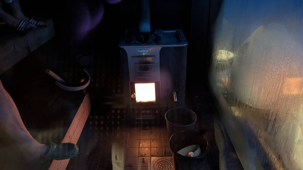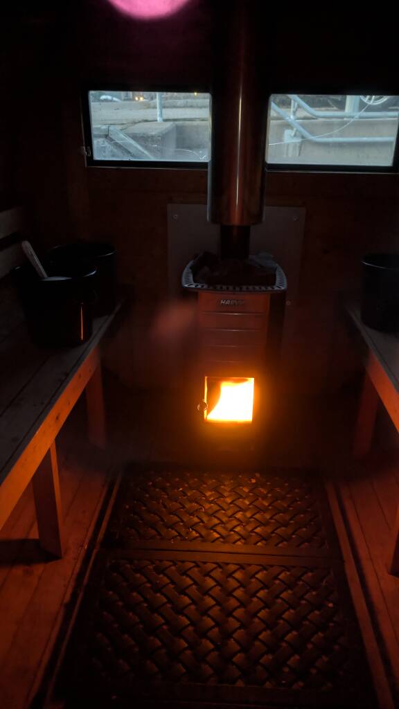 Oli synkkä ja kylmä loppiaista edeltävä päivä ulkolämpötilan ollessa noin -15 astetta ja tuuli lisäsi hyytävyyden tunnetta. Vastaiskun vuoden 2026 ensimmäinen sauna järjestettiin Sörnäisten Löylykontissa ja meidän saunavuorolle saapui noin kymmenen urheaa saunojaa. Olimme aikasemmin saunoneet löylykontissa vuonna 2022, mutta kyseessä oli Espoon Nokkalassa sijainnut siihen aikaan ainoa ja ensimmäinen löylykontti, nykyään löylykontteja löytyy useampia Helsingistä, Espoosta ja Tahkolta. Tällä kertaa päädymme vuokraamaan yksityisvuoron Helsingin Sörnäisistä saunasta Suvi.